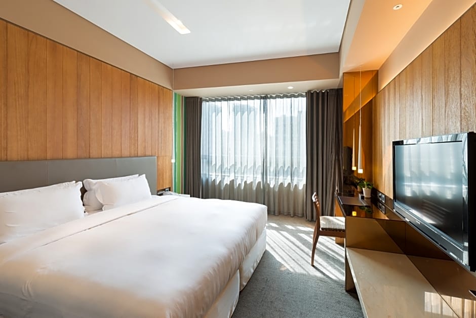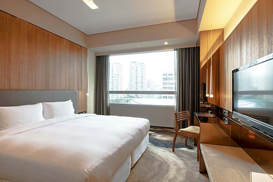 This room is 27 square yards providing a king bed, a mini-bar, an electric kettle, an iPod docking station, a flat-screen satellite TV, an in-room safe, ironing facilities and an private bathroom with a shower. Guests can have free access to the fitness facilities during their stay.